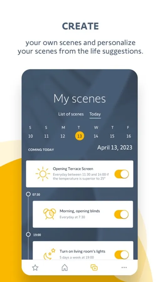 Create a comfortable connected home with TaHoma switch! The app will help you configure your TaHoma switch in just a few easy steps. Make your everyday life easier by creating personalized scenes. Use your imagination, discover all the possibilities:Control your home with the touch of a button
