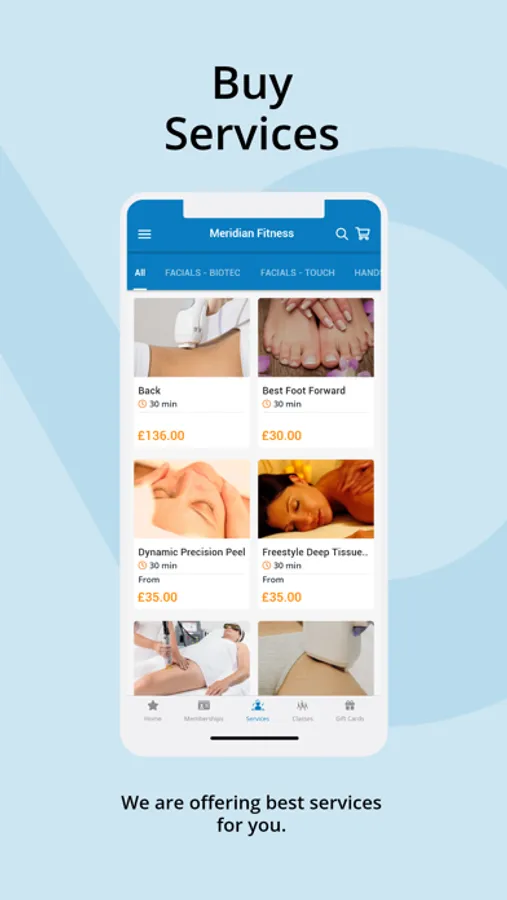 For instance, if you are a member of Health Club you will be able to book classes & buy memberships. If you are intended to book treatments or SPA session you will seeing the Salon, treatments and SPA related features.