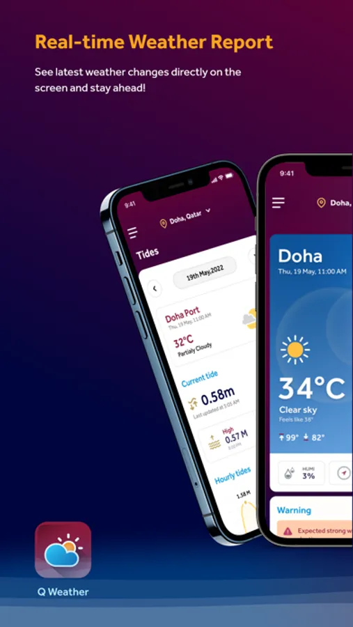 تطبيق Q Weather هو تطبيق حديث يعرض حالة الطقس الحالية والمتوقعة لمدن ومناطق دولة قطر بالاضافة الى المدن العالمية.