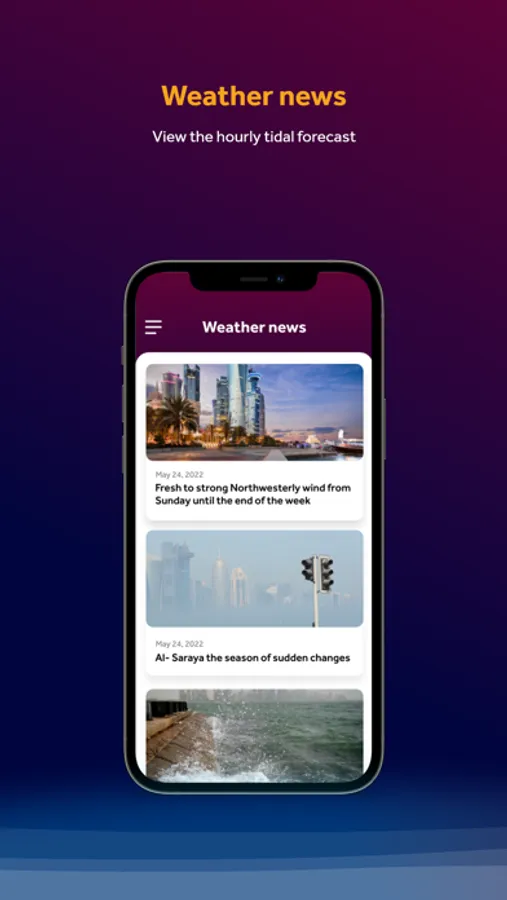يعرض التطبيق كذلك معلومات خاصة عن الحالة الجوية في دولة قطر مثل اخبار الطقس، التقارير، التنبؤات الجوية والبحرية والكثير غيرها.