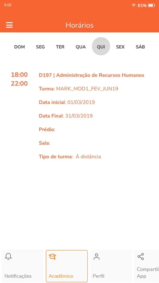 - Conferir todos os seus horários de aula com detalhes, como o professor, o prédio e o número da sala de aula;