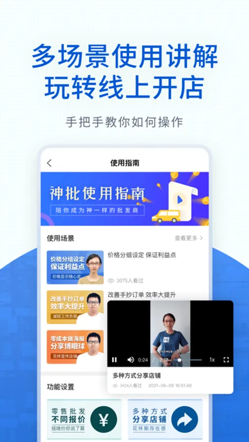 神批是快消品批发商网上开店工具。帮助批发商快速搭建网上商城,做生意记账、营销推广、顾客留存。支持一键生成专属的小程序微店,让批发生意更轻松。1万+批发老板都在用神批管理店铺,注册神批把被电商抢走的订单夺回来。