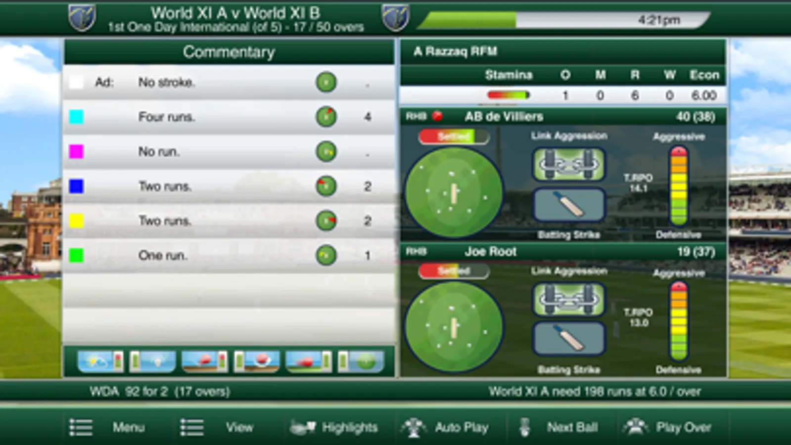 New tactical elements have been added, including an additional batting aggression setting, target run-rate indicator, re-balanced one-day match engine, and left-handed wrist-spin bowler type. There are extensive additions to the database, including additional player records broken down by domestic team played for. Put your tactical expertise to the test in the number one cricket management game.