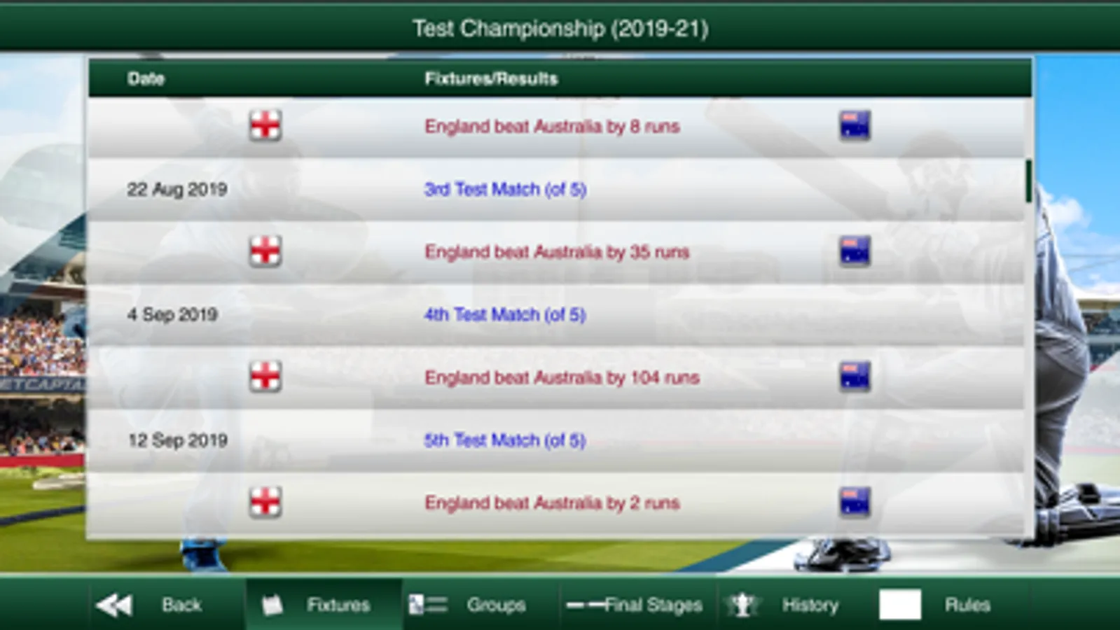 Cricket Captain 2019 is the perfect companion for a hugely anticipated cricket season. With the World Cup and Australia in England, and the inaugural test-match championship, old rivalries will be put to the test and new ones created.