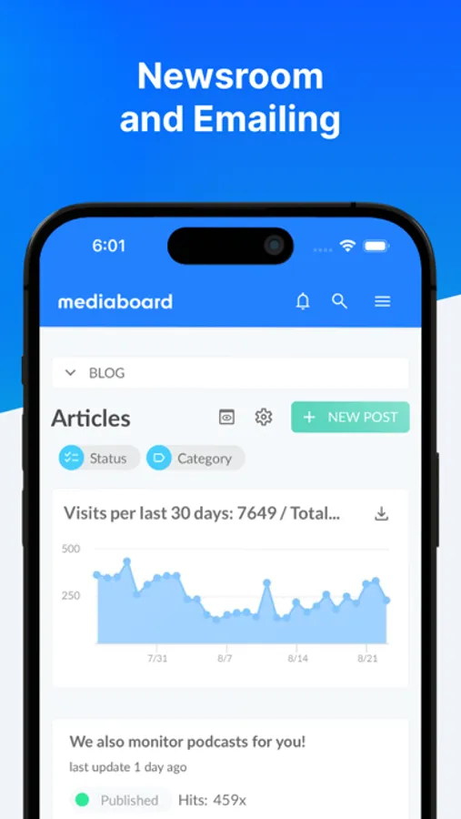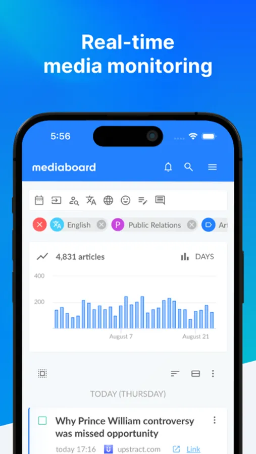 Enter the world of media intelligence and monitoring with the Mediaboard mobile app. Seamlessly track print, online and social media, podcasts, radios, and TV stations, ensuring no coverage goes unnoticed. Connect with media outlets, swiftly respond, meticulously track, analyze data, and fortify your brand's presence – all facilitated by Mediaboard.