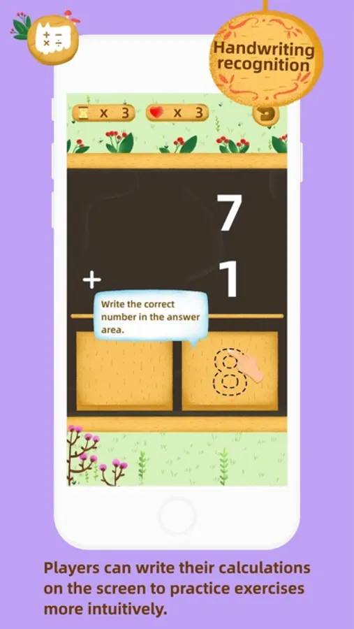 2. Handwritten number recognition technology: Writing on the screen for calculations. This can also be used on the tablet, like a pencil. This will allow the use of the hand and brain at the same time, helping to facilitate more intuitive calculation exercises.