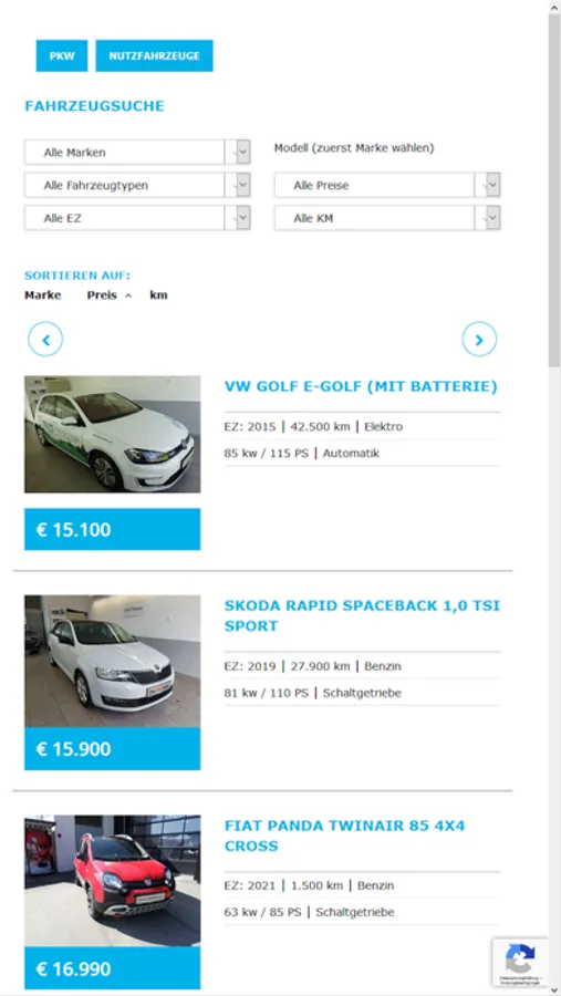Weiters bieten wir eine Übersicht aller verfügbaren Fahrzeuge im Katalog mit individuellen Filtermöglichkeiten zur vereinfachten Suche.