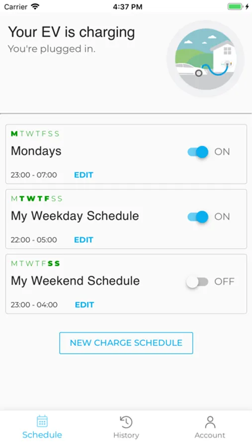 > Last minute plans? Use ‘Charge full speed now’ override button to charge immediately.