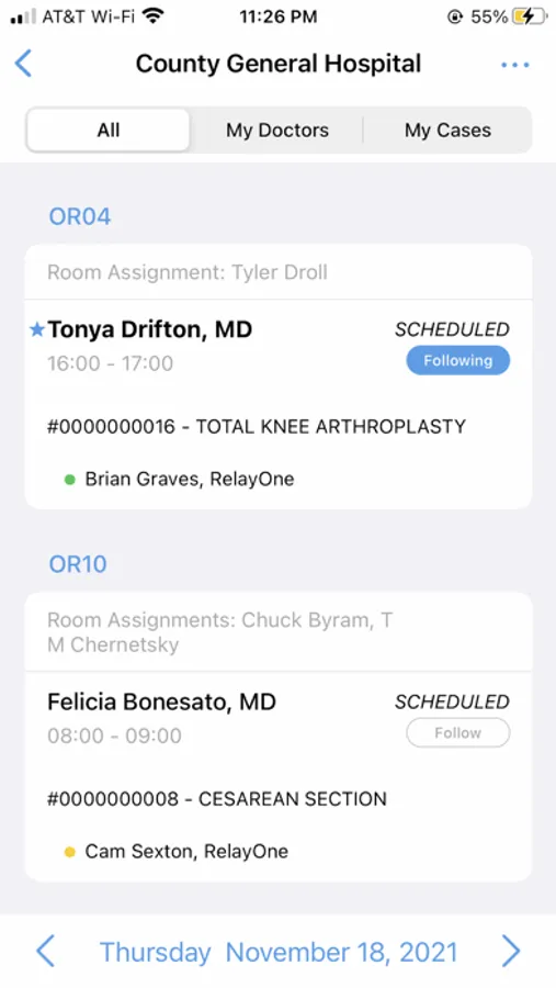 RelayOne gives you mobile access to surgical schedules so you have the most up to date information on the status of your cases. When a schedule changes, you are notified in real-time via push notifications. This means no more waiting around for cases, showing up to find that a case has been canceled, or chasing down reps to make sure you have the right product for a surgery.