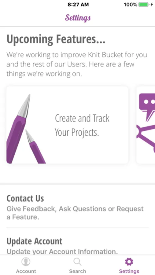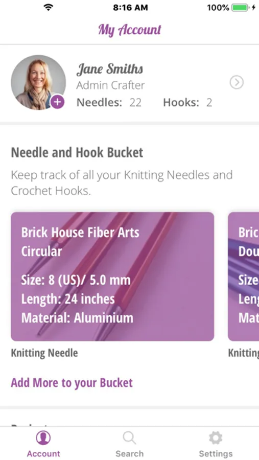 Knit Bucket is the perfect place to keep track of your knitting needles and crochet hooks. Scan the barcode on your package or enter it manually. So easy! Now, you can start tracking your projects in our new project bucket. Assign a needle or hook to your project and create as many counters as you need. More tools and features coming soon.