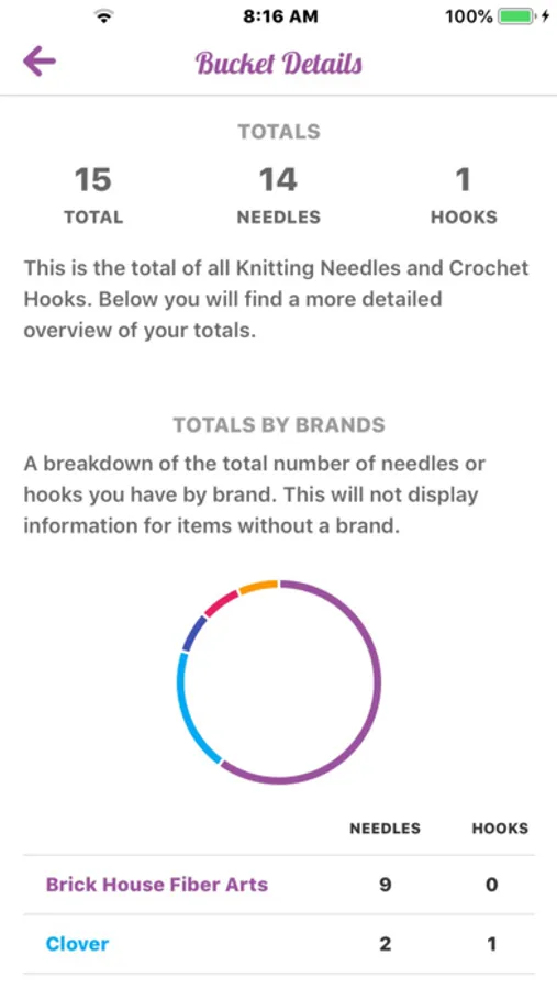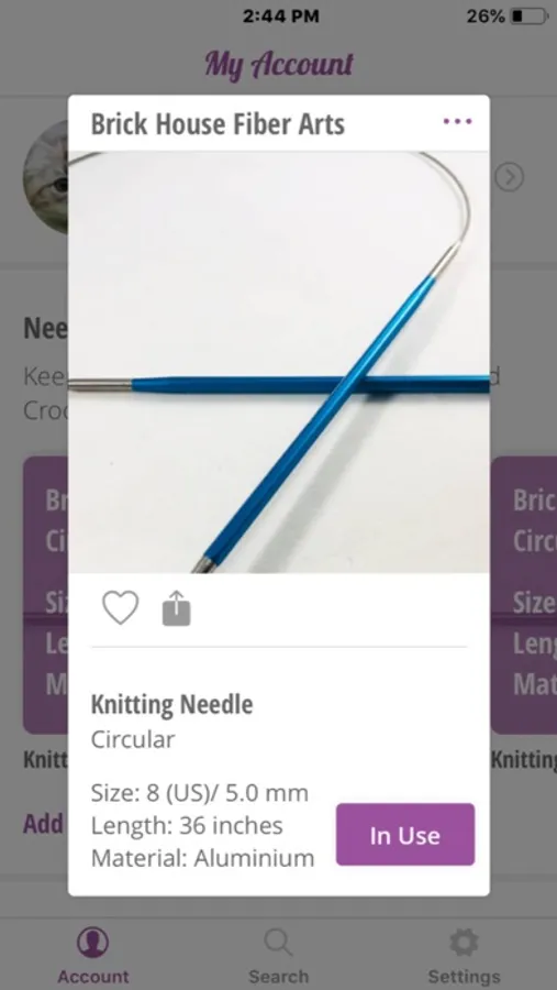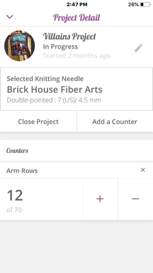 Project Tracking: Start a project and assign a needle or hook so you know it is in use. Add counters to keep track of your progress.