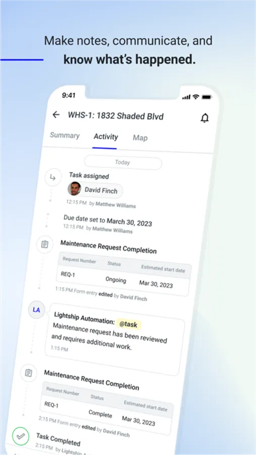 Lightship Works shows you what needs to be done, and gives you all the tools to complete that work. Tasks, checklists, forms, maps, and communication in one application.