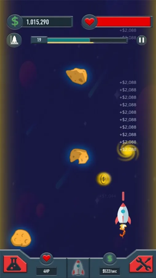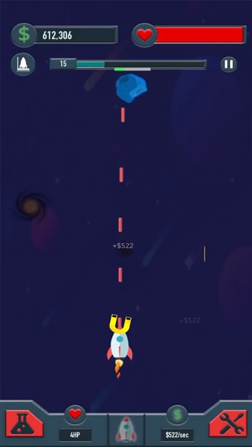 In Rocket Run you can blast asteroids, dodge black holes, earn cash and much more. The addictive and simple game has tons of surprises and fun. Don't forget to upgrade your rocket and to play the idle clicker to earn passive money. The research facilities earn for you both while you're playing and while you're away!