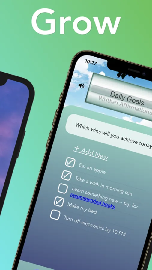 Grow – Goal setting, step by step, and so much more. Start with small simple goals and move on to life-changing success.