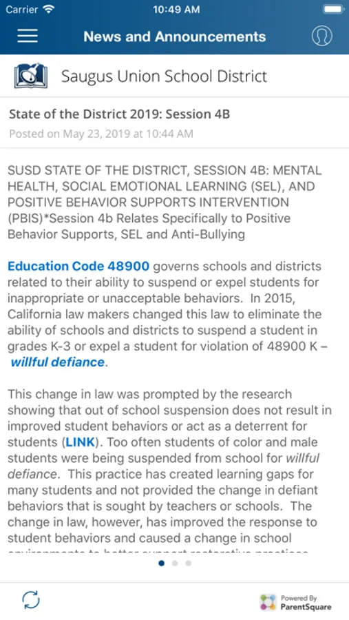 The SUSD ParentSquare app provides a simple and secure way to keep informed of all things SUSD related. It is a safe way for parents and educators to connect. With this app you’ll be able to: