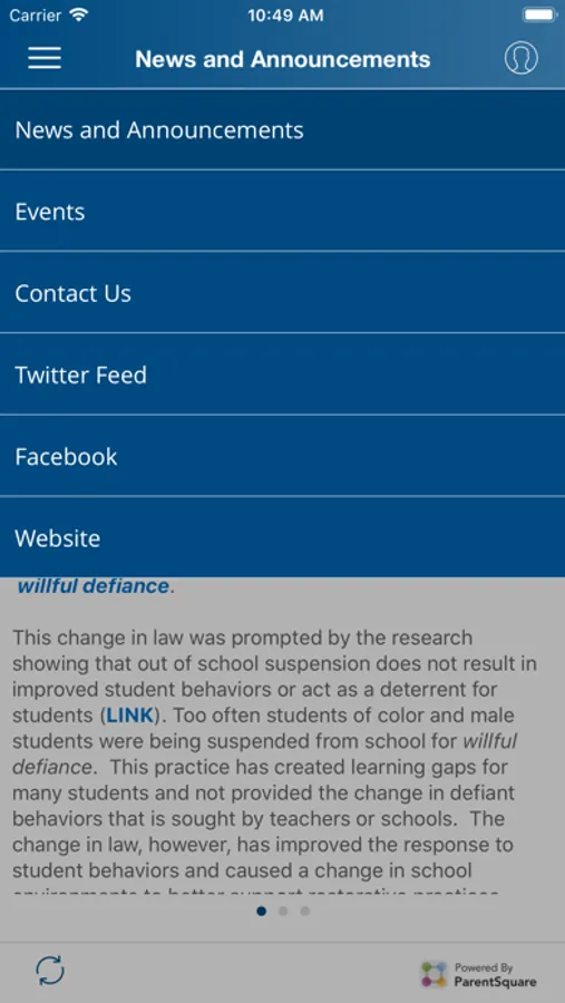 • View all district, school and classroom communication and receive app notifications