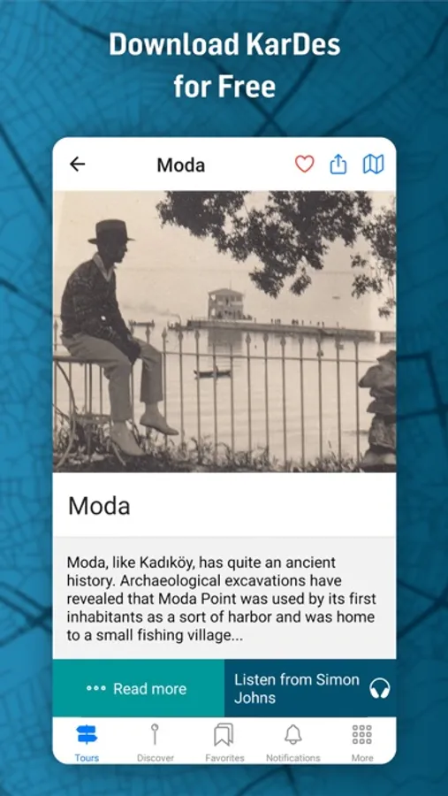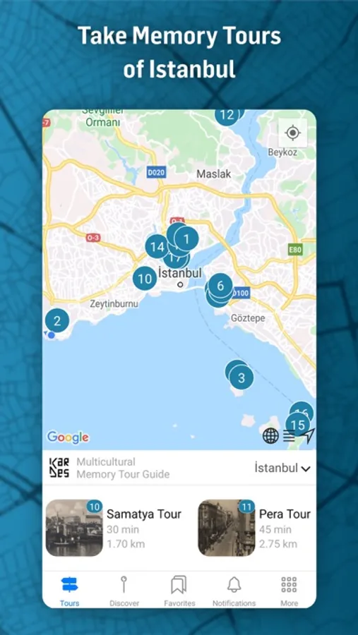 KarDes is a mobile application designed as a personal tour guide in Turkish and English languages for users who wish to discover the multicultural legacy and multilayered fabric of Istanbul, Ankara and Izmir.