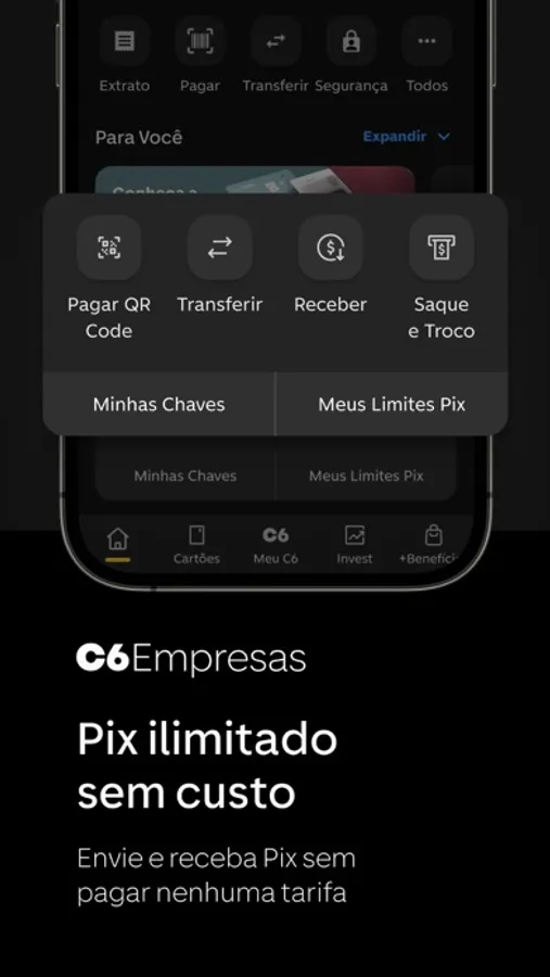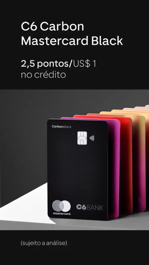 • Cartão de crédito e débito C6 e C6 Platinum sem anuidade (sujeito a análise)