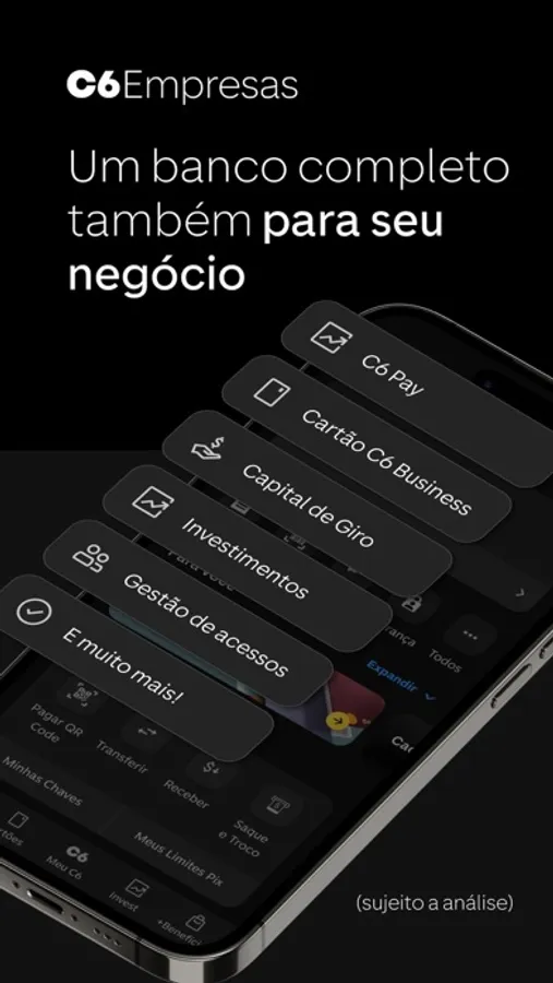 Abra sua conta digital no C6 Bank e conheça a experiência de um banco completo, criado para os nossos dias, com tudo em um só app. Confira sempre pelo app as condições vigentes dos produtos antes de contratá-los.