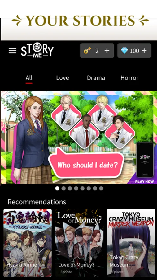 You can enjoy episodes in many genres such as dramas, love romance and adventure stories ,all for free! For those people who like to read more and more, we also have DLCs that can be purchased to increase the number of interactive stories as well. Why don't you come inside of our world and travel with us to a place full of action, romance and much more??