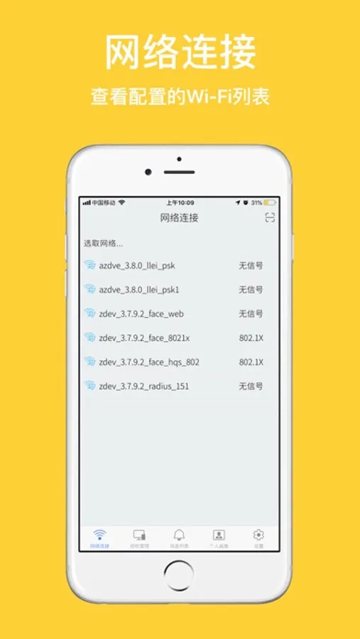1.网络连接:查看认证服务器上配置的SSID列表,点击指定的SSID进行WIFI认证