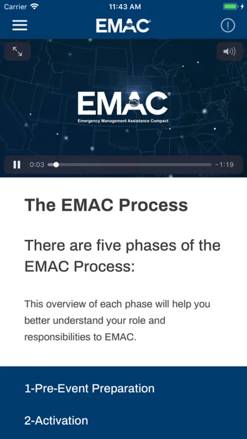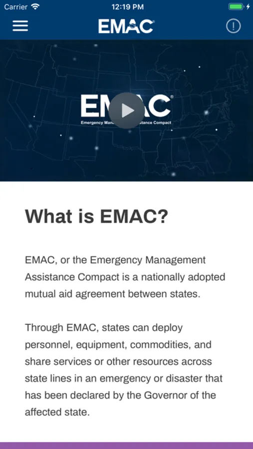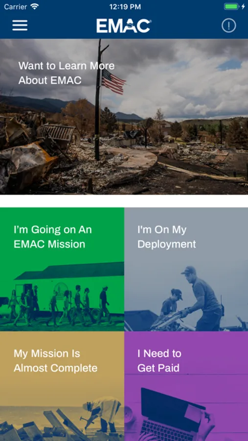 The EMAC Essentials app will guide you through the EMAC Process where you will test your EMAC knowledge by answering content driven questions and learn key details to help you prepare for, respond to, and seek reimbursement for an EMAC deployment.