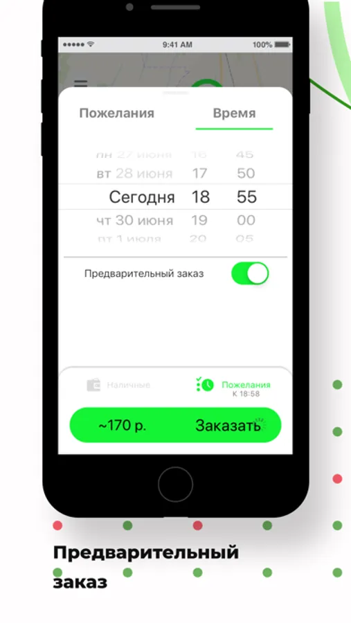 Нужен автомобиль к определенным времени и дате? Закажите его заранее через приложение, и в назначенное время такси будет ждать вас у подъезда.