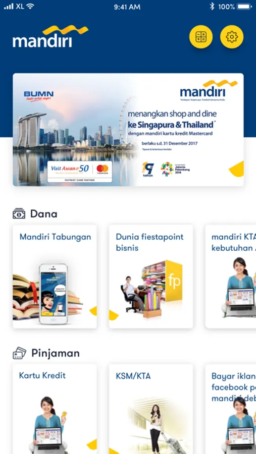 Aplikasi Mandiri eMTK, menampilkan informasi-informasi produk dari Bank Mandiri, seperti Mandiri Tabungan, KPR, dan lain-lain.