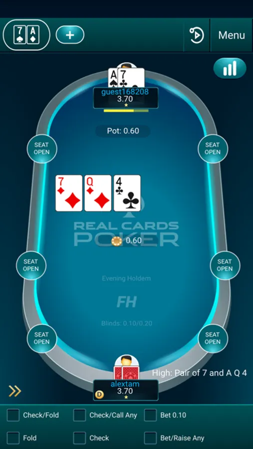 Real Cards Poker and its use is intended for an adult audience. Practice or success on a social gaming platform does not imply future success at real money gambling.