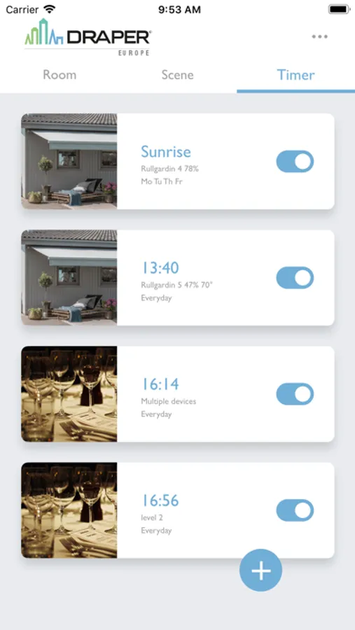 The Enyroom Home app allows you to control our Enyroom motorized window coverings and Euroscreen projection screens more freely on smartphone. Please configure your Enyroom Home app account, and a Wifibox together with your motorized products in the Enyroom Home app before use.