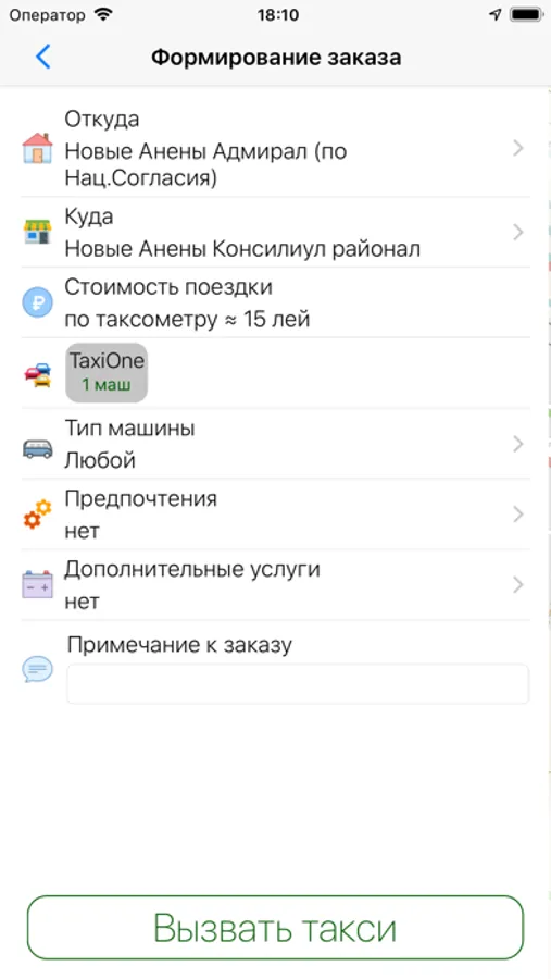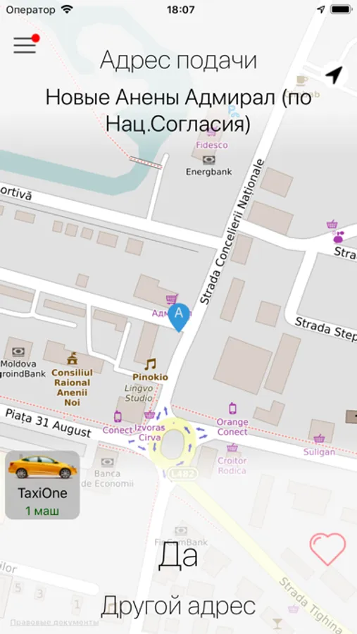 Клиентское приложение для вызова такси в городе Новые Анены и других городах Молдовы