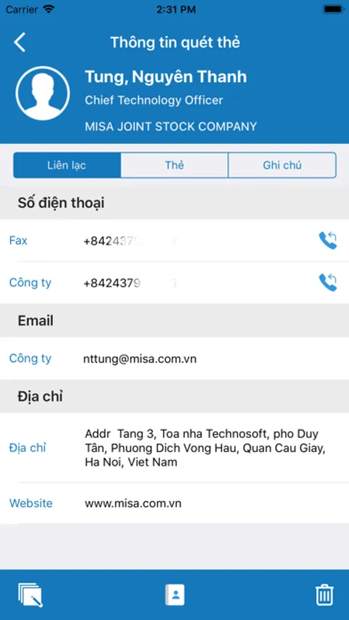 ScanCard - Mobile application helps users extract information quickly from business cards. The extracted results are stored in the contacts or application memory.