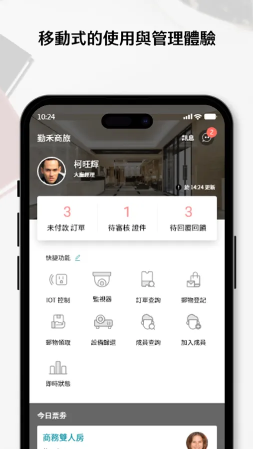 您可以隨時隨地管理包括會議室或座位等空間預訂、設備租借與歸還、物品代收、訪客接待、環境IoT及能源等,亦能掌握空間運作的即時通知,並做好事前準備,以減少突發且瑣碎的事務處理。