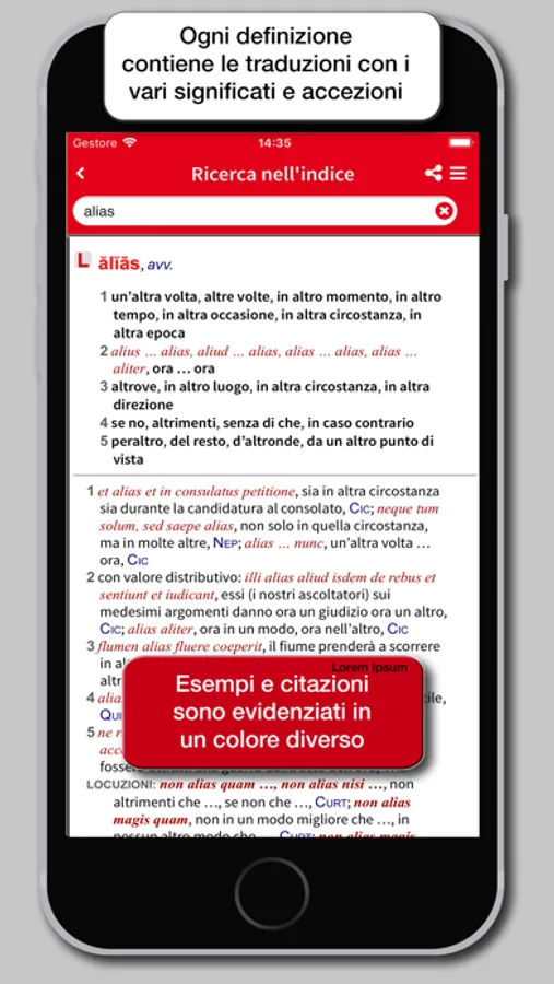 The app Hoepli Latin Dictionary is the result of a ten-year team work by a group of authors who intended to put together the scientific skills of university research with the teaching experience to provide a reference work really designed for the current school.