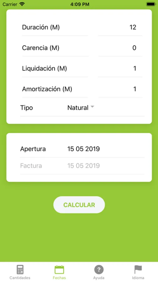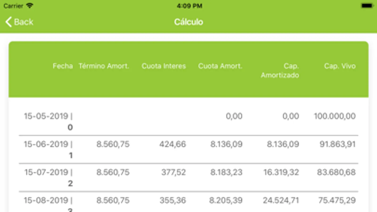 Considera: los periodos de amortización, liquidación, carencia; interés de apertura y deudor, fecha de apertura, año natural o comercial, amortizaciones por: método americano, francés, alemán...