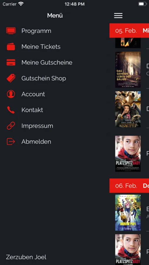Ihre gekauften Gutscheine und Tickets finden Sie ebenfalls direkt in der Kino VS App.