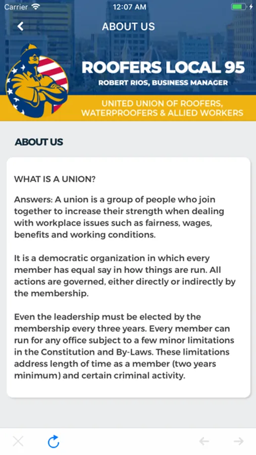 The Roofers Local 95 mobile app is designed to educate, engage and empower our Members. This app is to be used as a tool to better understand the benefits available to our Members working in the Industry. This app is only available to Roofers Local 95 Members.