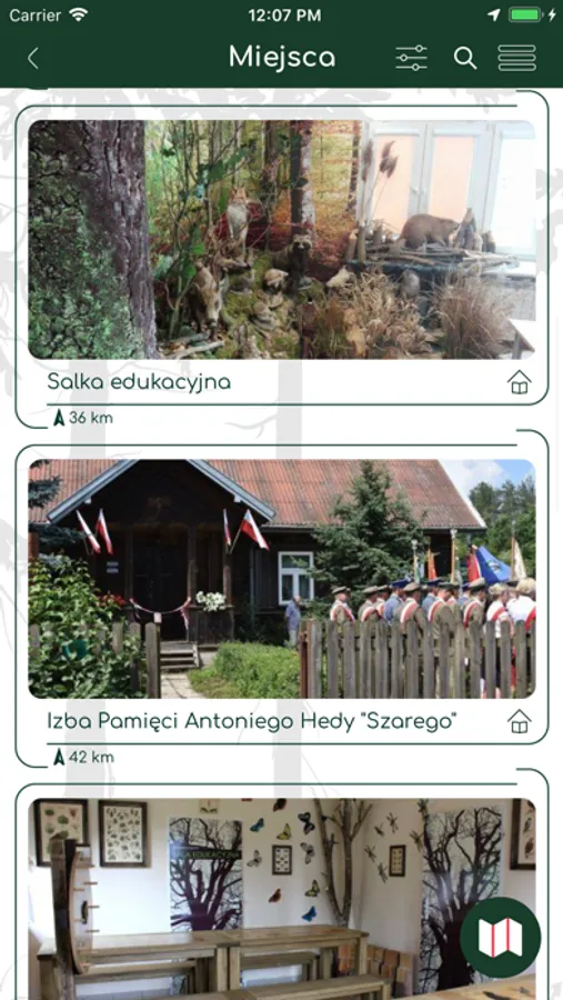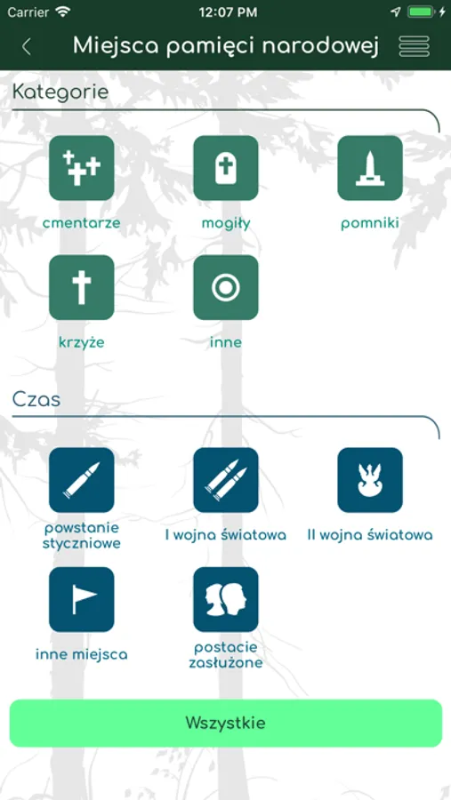 Aby ułatwić odnalezienie interesujących miejsc, baza obiektów podzielona została na kategorie, a miejsca pamięci dodatkowo na kategorie czasowe. Strona i aplikacja zawierają ponadto historie związane z miejscami pamięci narodowej oraz wydarzenia związane z nimi. Pełną bazę punktów i tras można obejrzeć na mapie. Z poziomu mapy można też przejść do szczegółów wybranego obiektu. Podkłady OpenStreetMap dostępne są offline. Mobilny przewodnik pełni ponadto rolę komunikatora pomiędzy turystami i leśnikami – użytkownik może zgłosić np. nielegalne wysypisko śmieci, pożar oraz informowany jest o najważniejszych wydarzeniach w okolicy. Ciekawą funkcję stanowi możliwość dodania propozycji miejsca do ujęcia w projekcie i przesłania jej do serwisu.