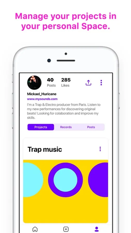 Access to a Feed with performances from other artists. Listen to them and access to open-source projects to start your own creations.