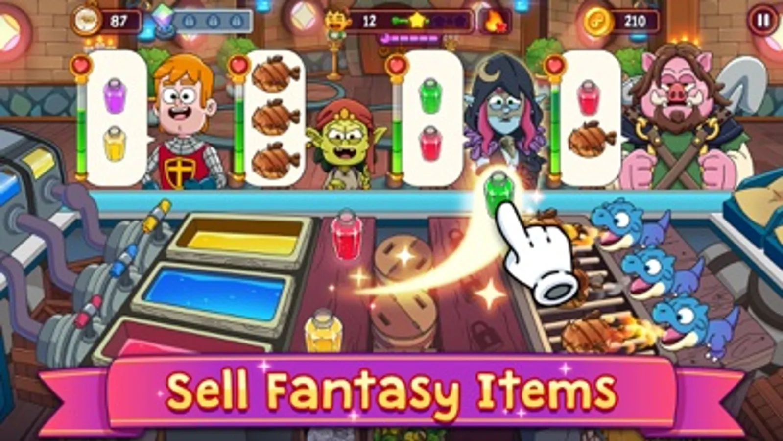 ● Throw fun gacha parties and magical feasts to attract new customers from every corner of the kingdom.