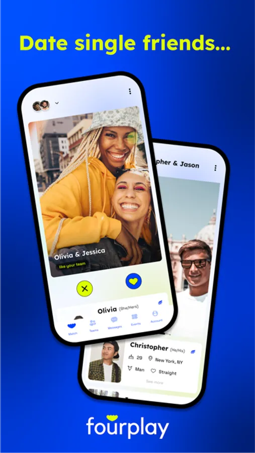 Fourplay is all about two things: single friends and double dates. If you aren’t having fun on other dating apps, then come join the Fourplay party. All singles are welcome!