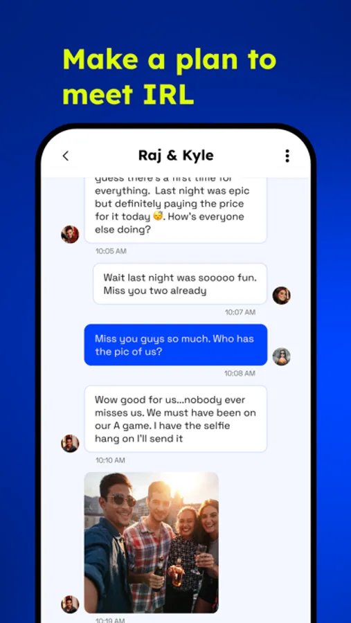 Once a match happens, a group chat is generated. Forget those boring one-on-one conversations on dating apps where you’re trying to make banter with a stranger and the jokes just aren’t landing. In the group chat, your friend will 100%, probably, maybe laugh at all your jokes.