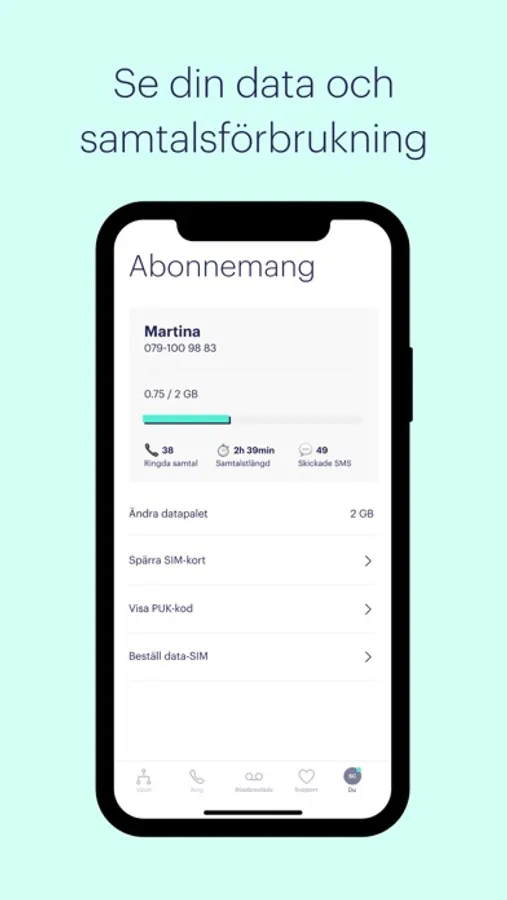 ** Om du har en annan mobiloperatör än Telness och ringer ut samtal genom appen så kan en kostnad tillkomma från den operatören.