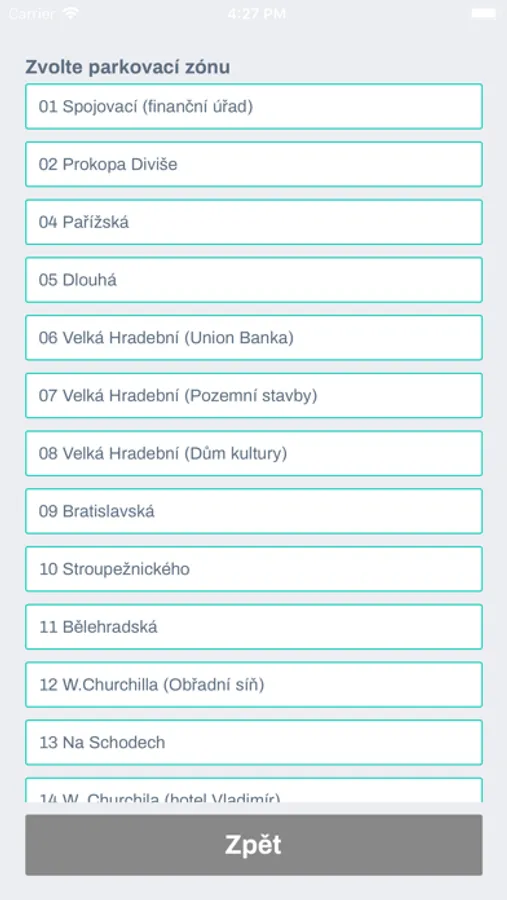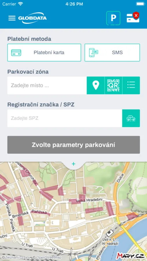 Pokud aplikace získá od uživatele oprávnění k načítání pozice zařízení je zakoupení parkovacího lístku otázkou zápisu registrační značky parkovaného vozidla a výběru doby parkování.