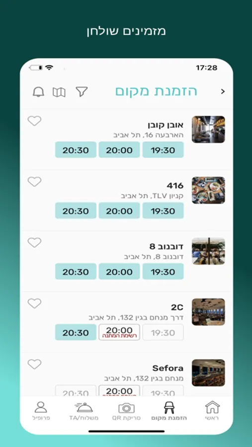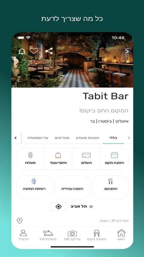 עם Tabit תראו תוך שניות איפה יש שולחן פנוי באזור שבחרתם, תעיינו בתפריט ותתעדכנו במנות המומלצות.