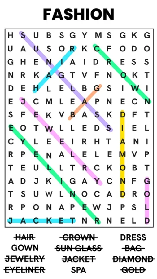 A scramble word search game is the best way to relax. Get ready to solve fun word puzzles. Once you play it, you'll want to share it with your friends. Our free word search game also has fun categories like shopping, travel, fashion, etc.