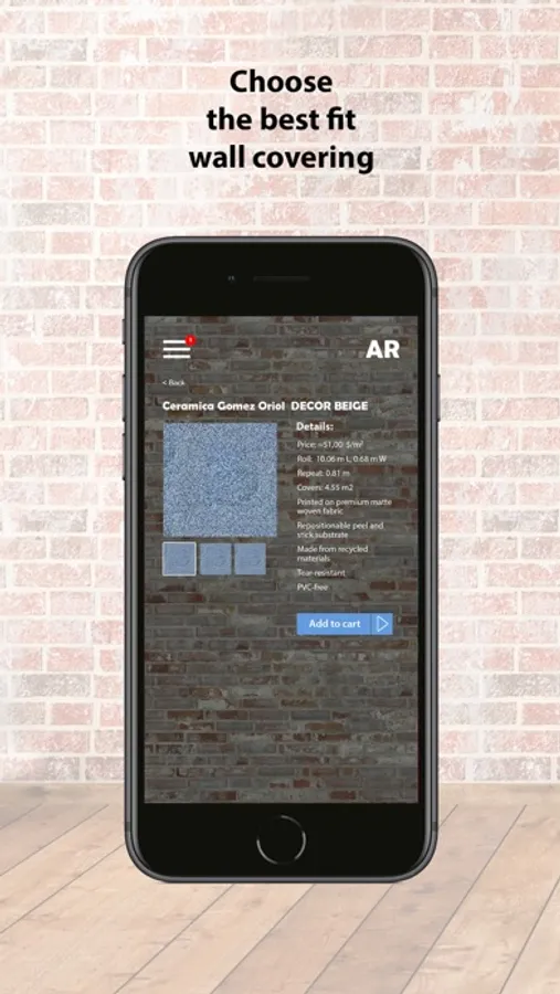 You are able to choose the covering, find out how it looks in your room, how many rolls or pack are required, how much it costs. And order that just tapping the button in your smartphone.
