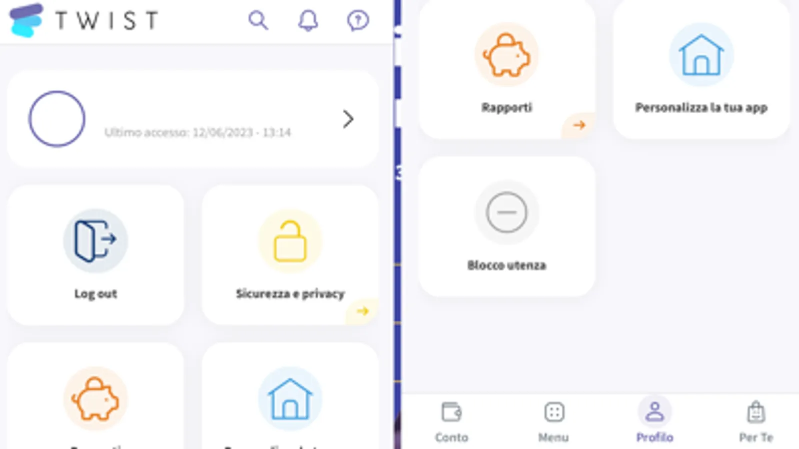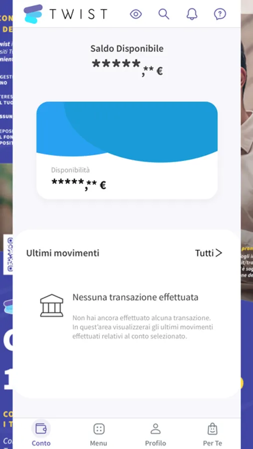 Puoi accedere ai servizi del tuo Conto Twist comodamente dal PC di casa o dal tuo smartphone/tablet utilizzando la mobile App.