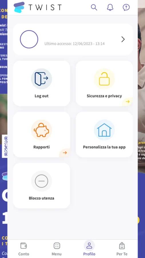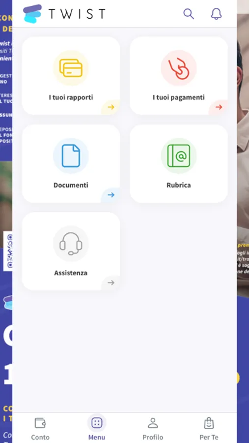 Con la App di Twist hai sempre sotto controllo la situazione dei tuoi conti, le comunicazioni da parte della Banca e gestisci in piena libertà i tuoi pagamenti.