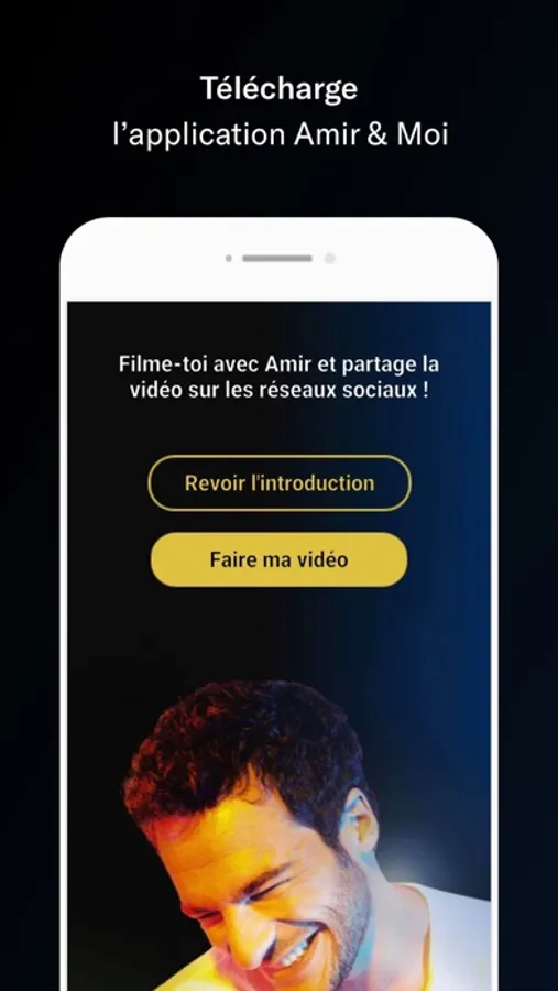 Film yourself with Amir and share your video on Social Media! Thanks to "Amir & Moi" app, Amir will appear on your phone screen as an augmented reality hologram. You will be able to sing with him his single "5 minutes avec toi".